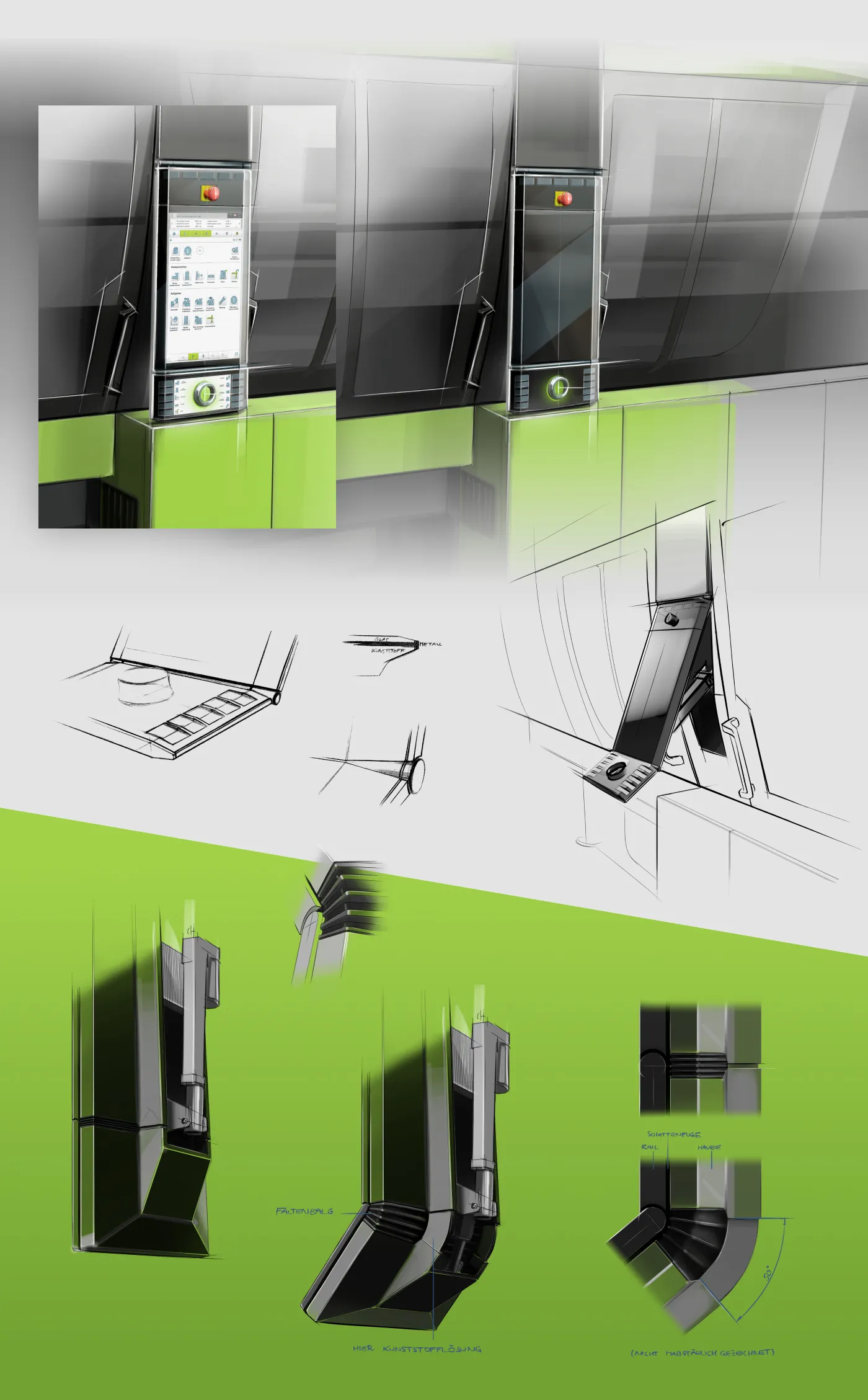 Industrial design and UX for the CC300 control unit as a reference for usability and flexibility – including the innovative ‘e-move’ rotary control